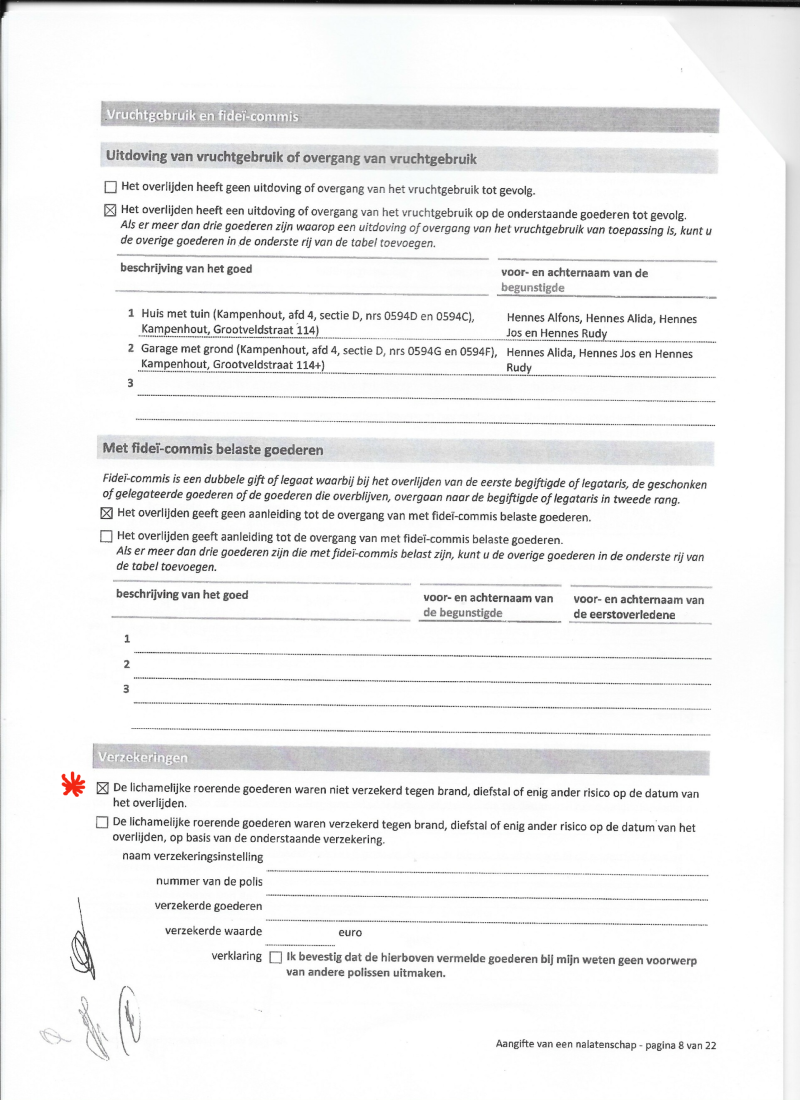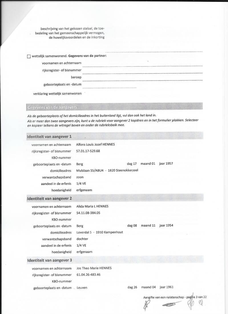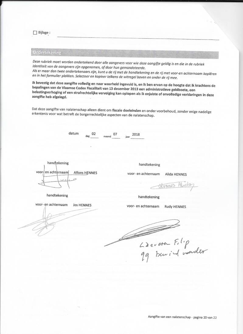 nr 700000 de 'ondertekende' aangife van : nalatenschap vader Ernest HENNES